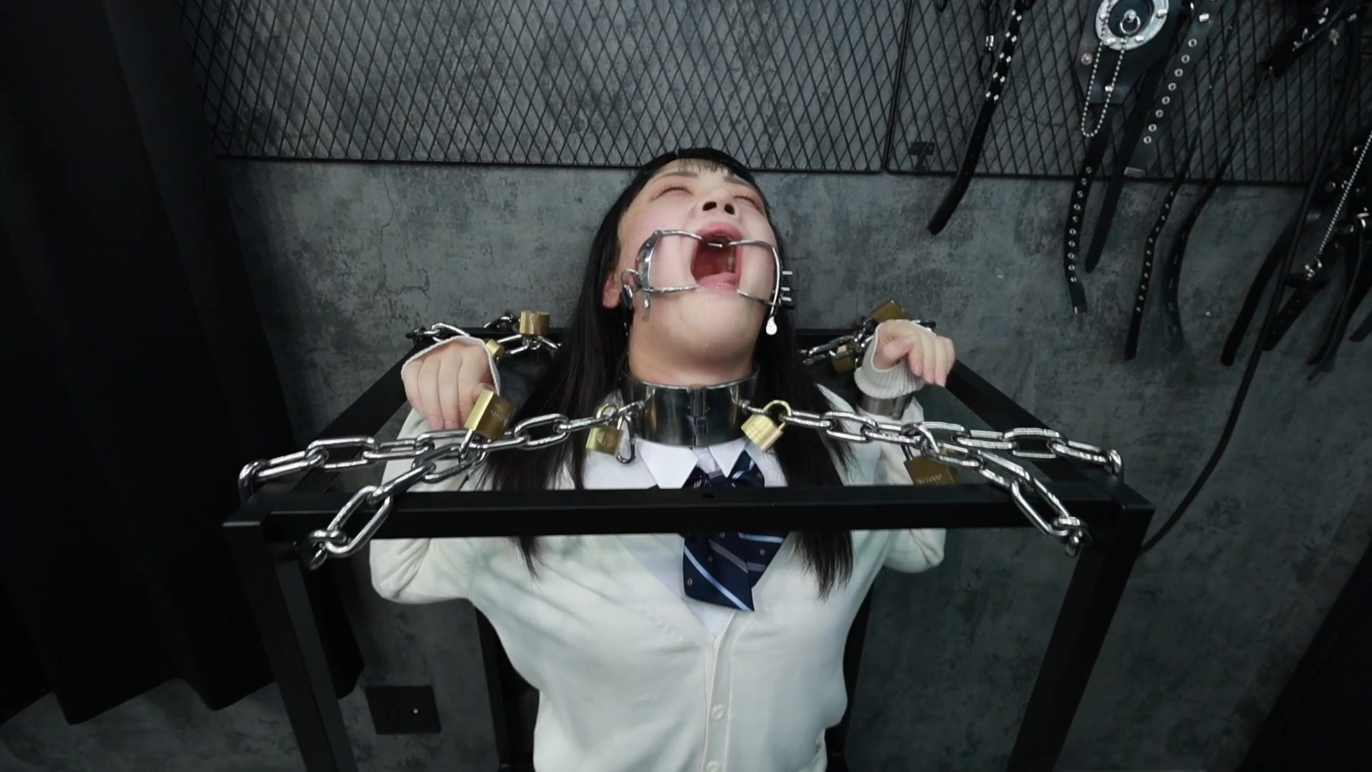 【缚心室】80多斤女学生的拘束架折磨小合集,啵啵贝VS炮机,两种