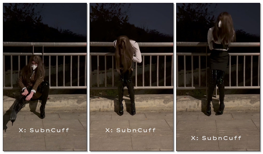 2025年第一次自缚 选择了一次风险很高的户外自缚 又翻出了很久没穿的长筒高跟靴 然后用定时锁把自己锁在了一座桥的栏杆上 倒计时结束前没有任何逃脱的可能
