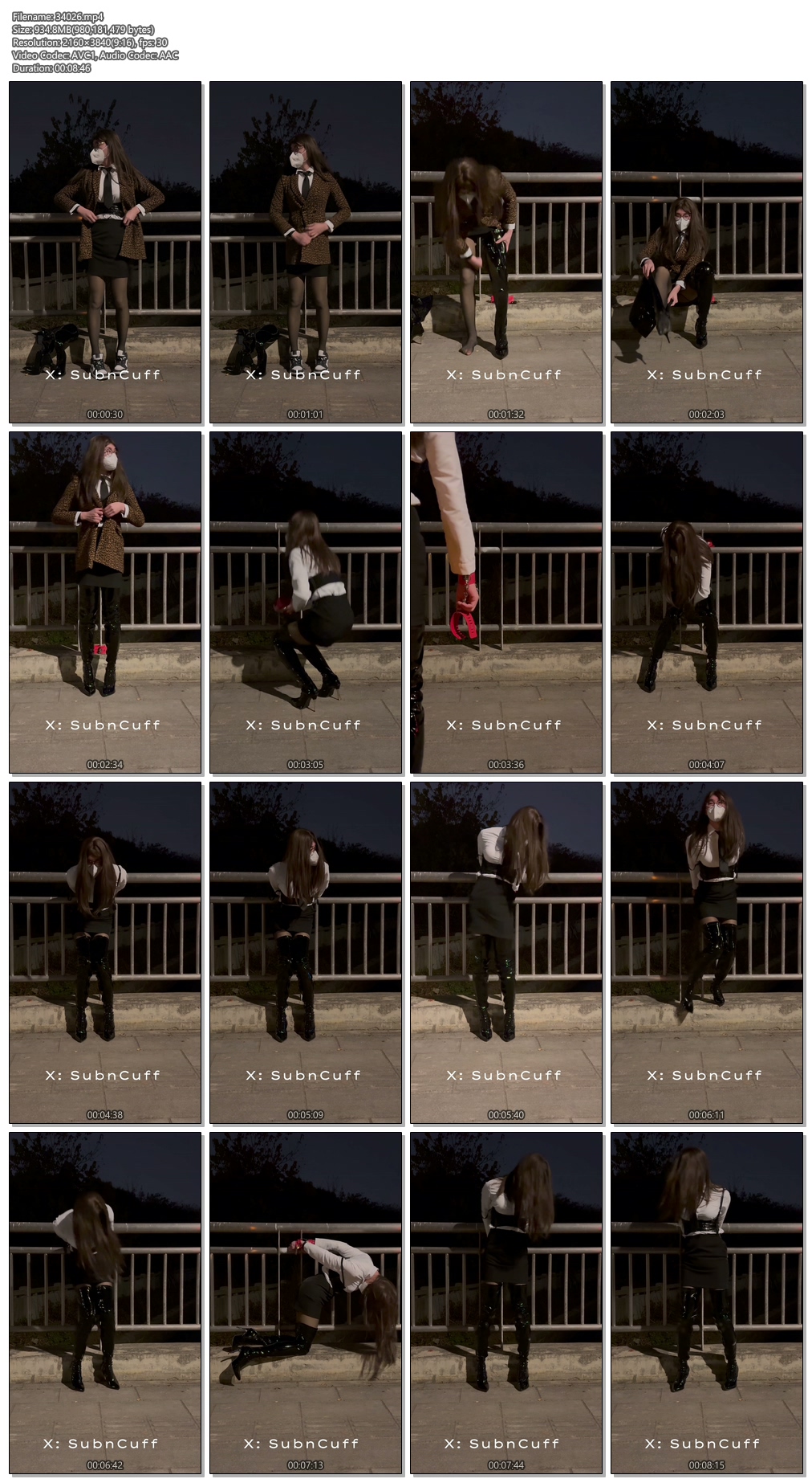 因为双手从栏杆中间伸过去铐住 所以既不能完全站直 也没法蹲下 姿势非常难受 后边因为12厘米的跟加上小玩具实在太折磨导致站不稳 但双手又被牢牢地铐在杆子上 所以只能跪在台阶上了
