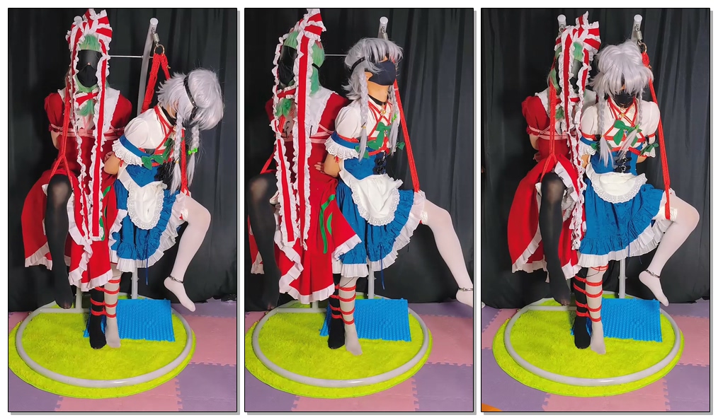 【时生】东方project十六夜咲夜和转转的双人cos调教,单腿吊+两人贴贴+郊狼电击+振懂棒