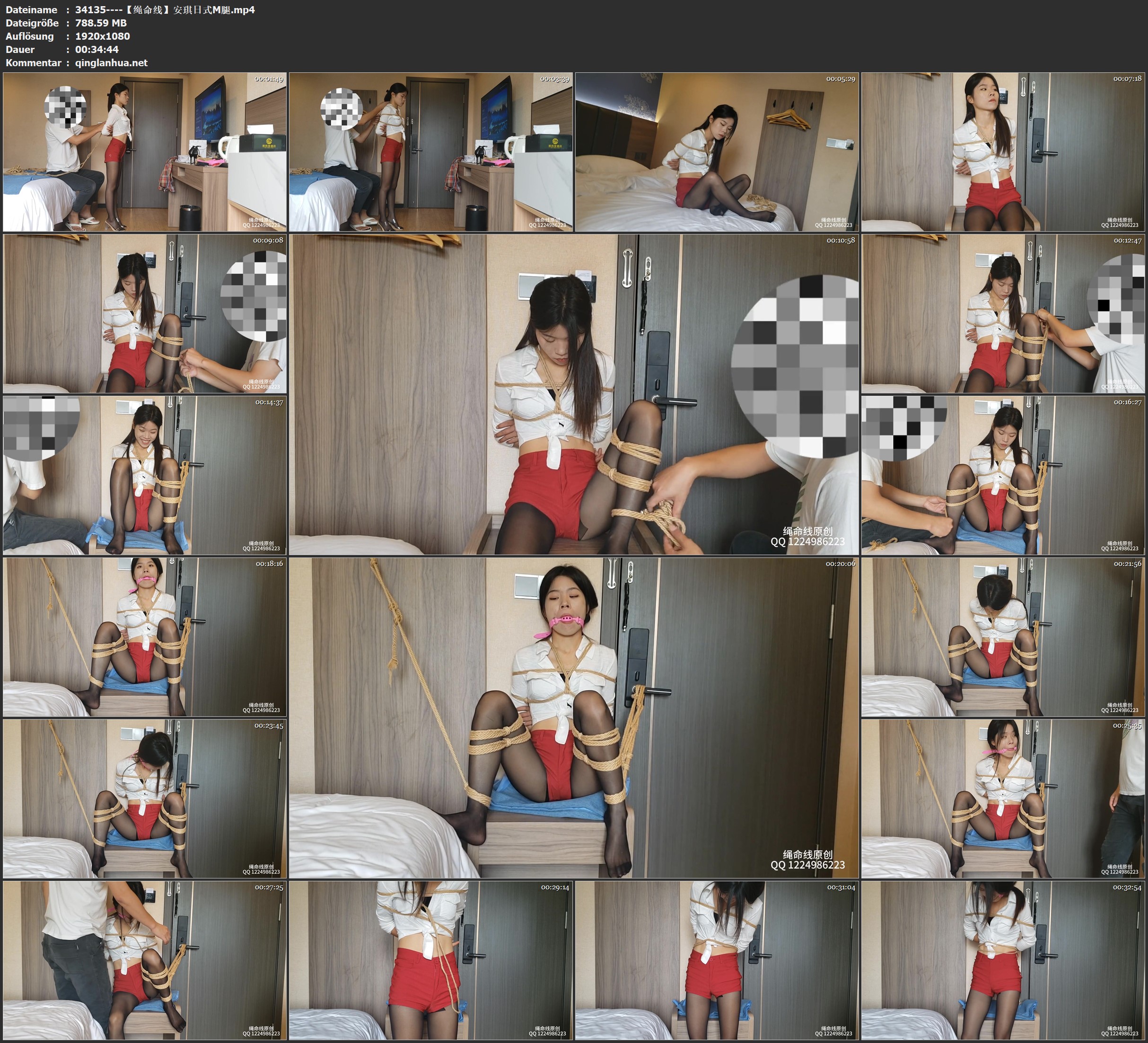 安琪男朋友走了之后,叫她换了套服装,穿上黑丝绑了个日式M腿,看起来还是挺诱惑的,绳师电话来了,只能让她自己在房间里挣扎脱缚,最终绳师回来了,绳子还有一点点没解开,哈哈哈!