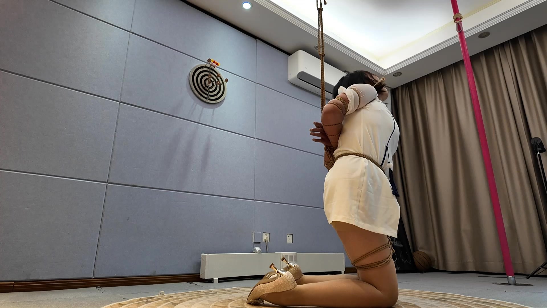 熟女陈红,绝对的紧缚,传统标准五花紧缚,捆绑结石后,吊着,木棍堵嘴,跪着,股绳吊着,趴着,吊起双腿,手指渐渐失去知觉,然后麻木,手臂麻木,变色,加上木棍堵嘴,口水不停的流出,紧缚的疼痛,无助。只能跪在地上呻吟。直呼太疼了,被迫求饶