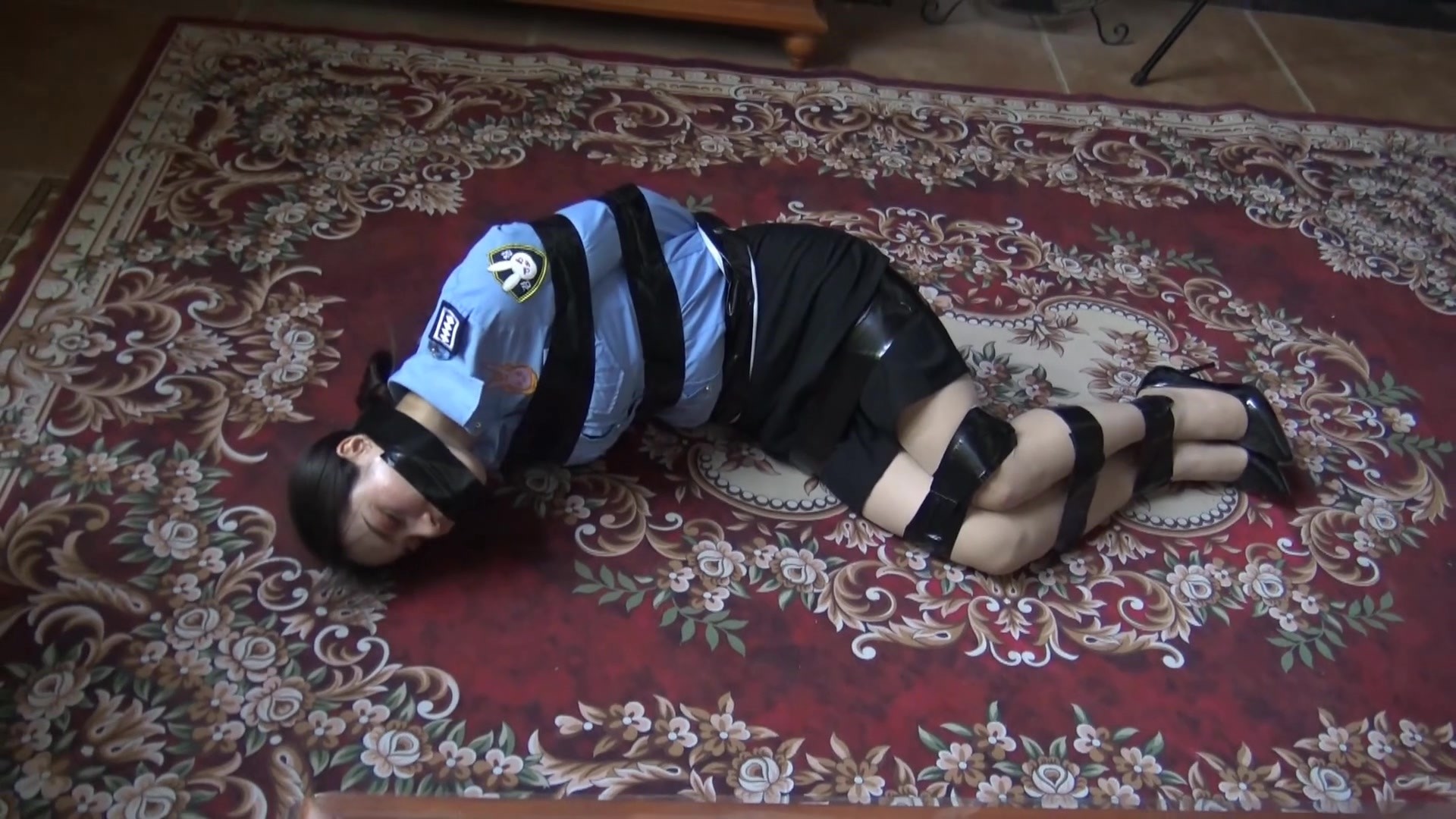 两个女保安小区巡逻,她们巡逻到一个住户家门口,门没有锁她们就进屋查看,正在搜查被人有后面捂晕,最后她们被用黑胶带全身紧紧捆绑着,她们结局怎么样,请欣赏视频
