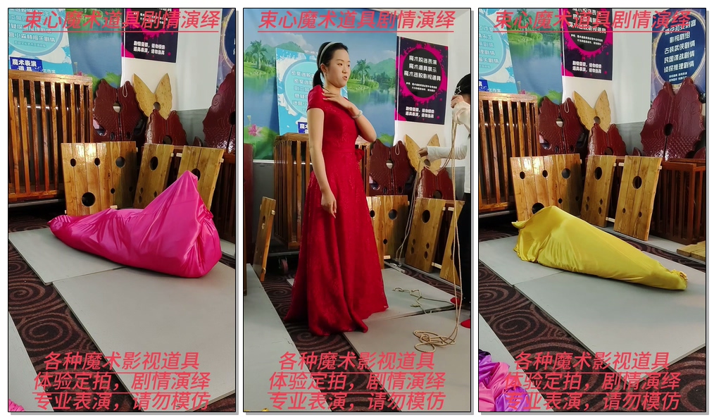 【束心工作室】兰兰白色婚纱,红色礼服,五花捆绑,布袋挣扎逃脱游戏