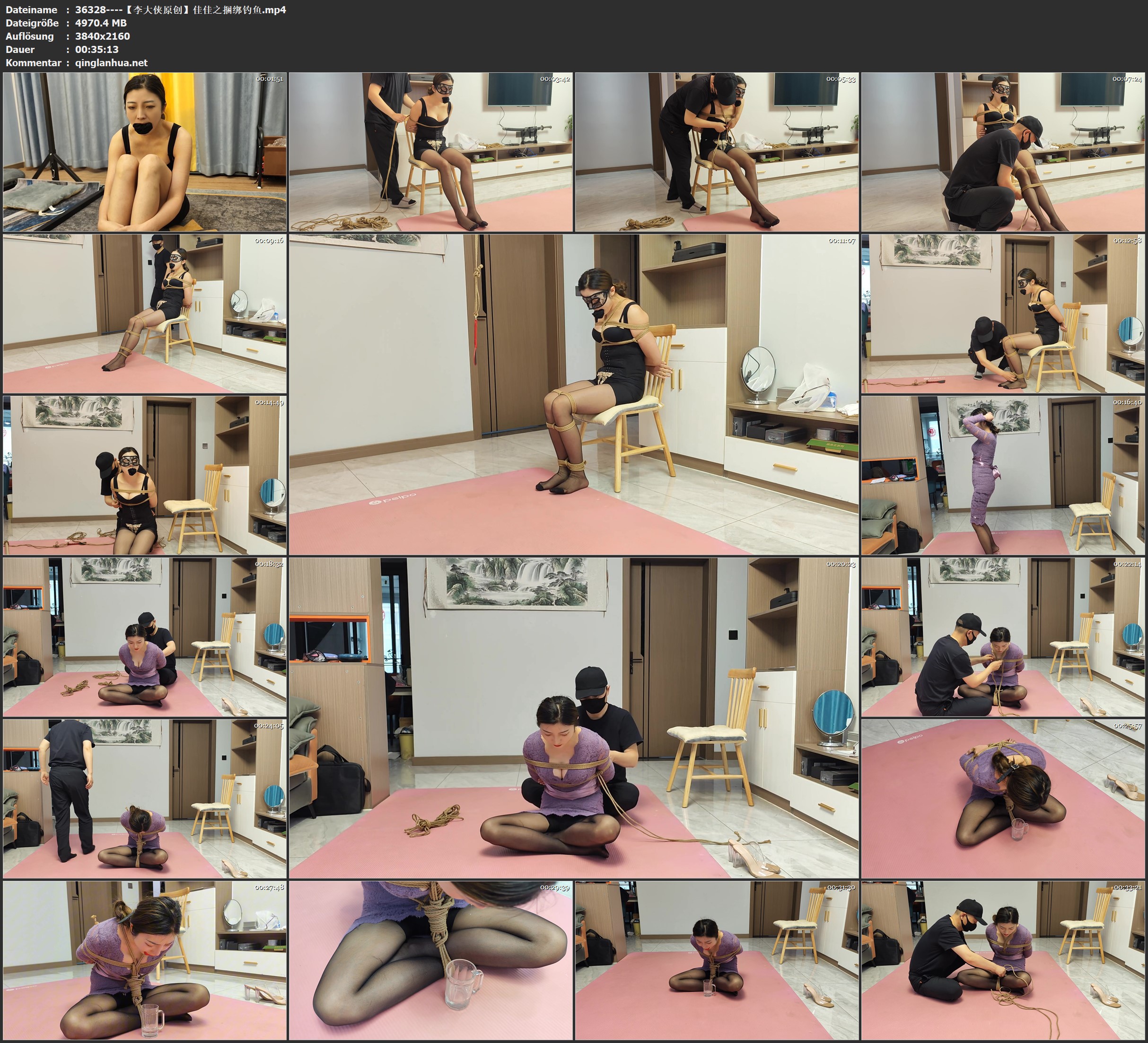 接上一集,佳佳脱掉衣服,只穿塑身衣,绑到椅子上,钓鱼,用脚夹着算成功,否则一直绑着,佳佳很棒,没想到很快就成功,换上少妇长裙,被威胁跳舞,最后绑成海老缚收集口水
