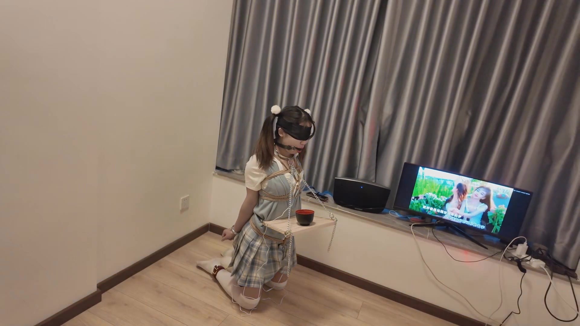 【缚心室】80多斤女学生的拘束架折磨小合集,啵啵贝VS炮机,两种