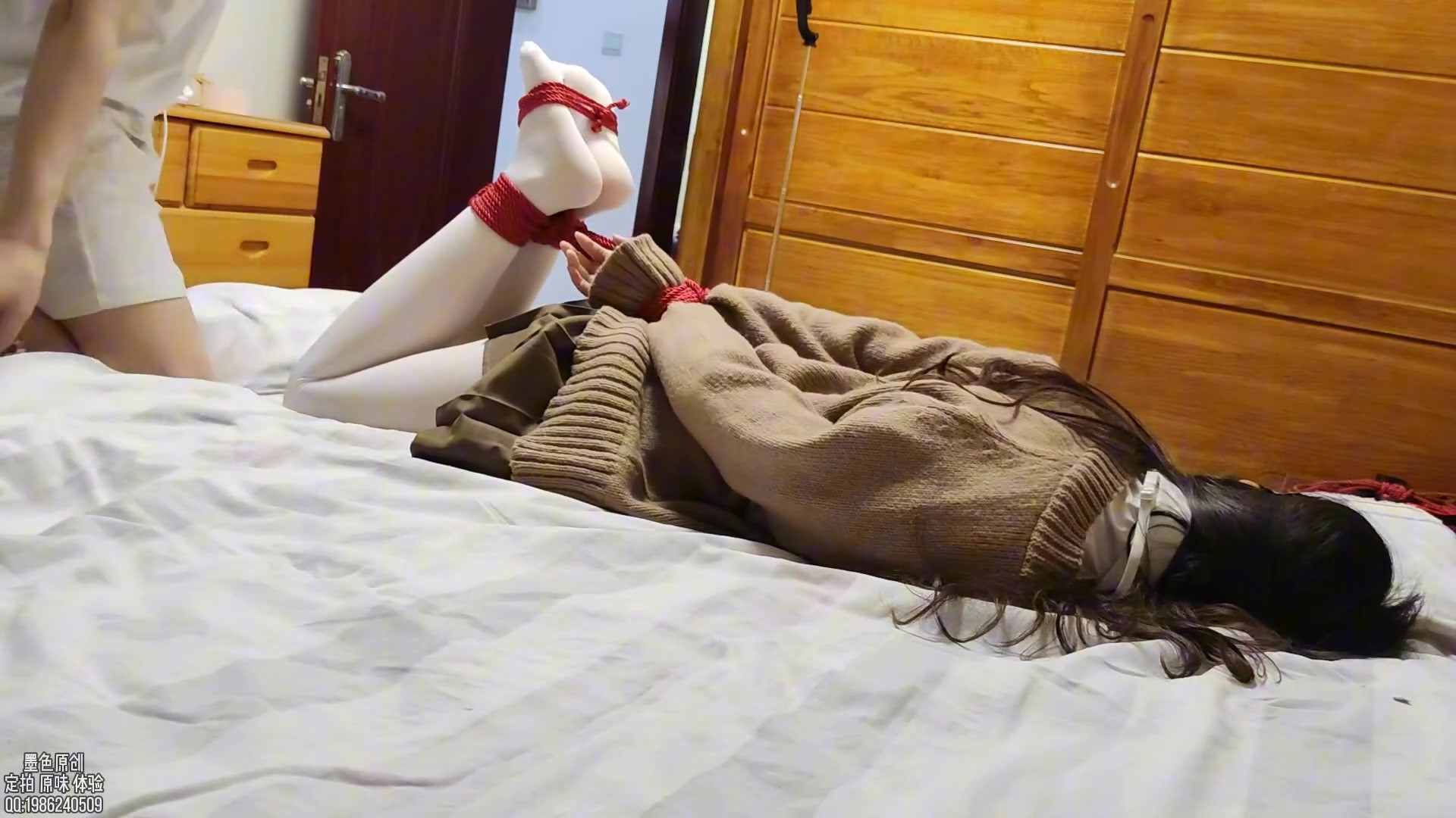 喜欢自缚的婷婷穿jk白丝回家后在床上自缚,用红绳捆绑自己的双脚,带上蕾丝眼罩,丝带捆绑双手。自缚之后自己在床上偷偷抚摸自己呻吟享受,然后被回家的主人发现,主人把婷婷重新捆绑成驷马,并用鞭子抽打婷婷的脚心,屁股作为惩罚,惩罚过后留婷婷自己一个人在房间挣扎,婷婷多次试图挣扎起身失败,最后主人进来给婷婷松绑。