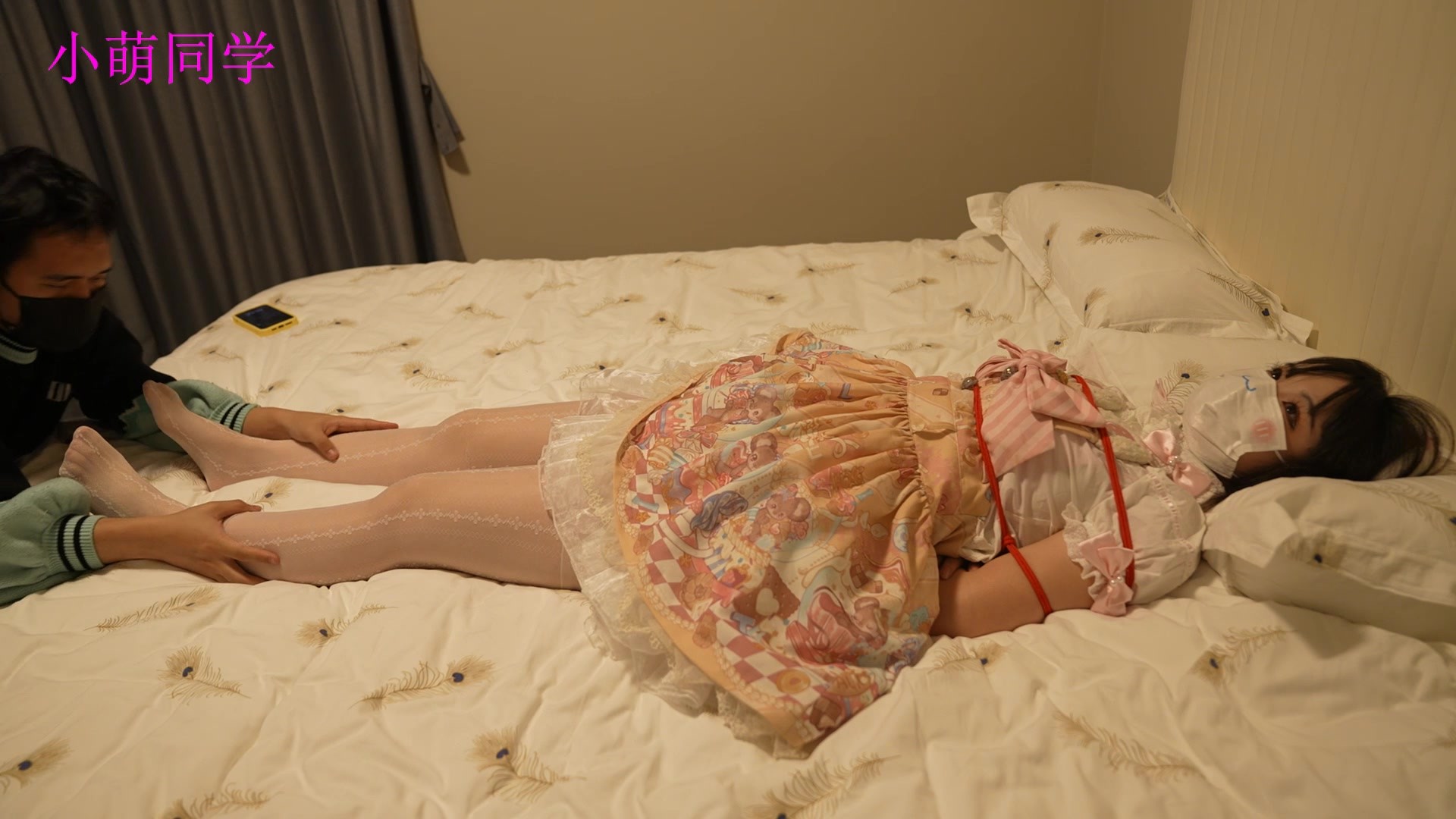 洛丽塔白丝双马尾萌妹小萌跟同事合租,回到家洗澡同事却偷偷拿起小萌的丝袜开始玩,没想到被小萌发现,尴尬的他想到了杀害小萌再玩弄的想法,于是偷偷进门把小萌勒晕,随后绑起来玩足,小萌醒过来后直接被绑紧勒脖死,继续新一轮的玩弄