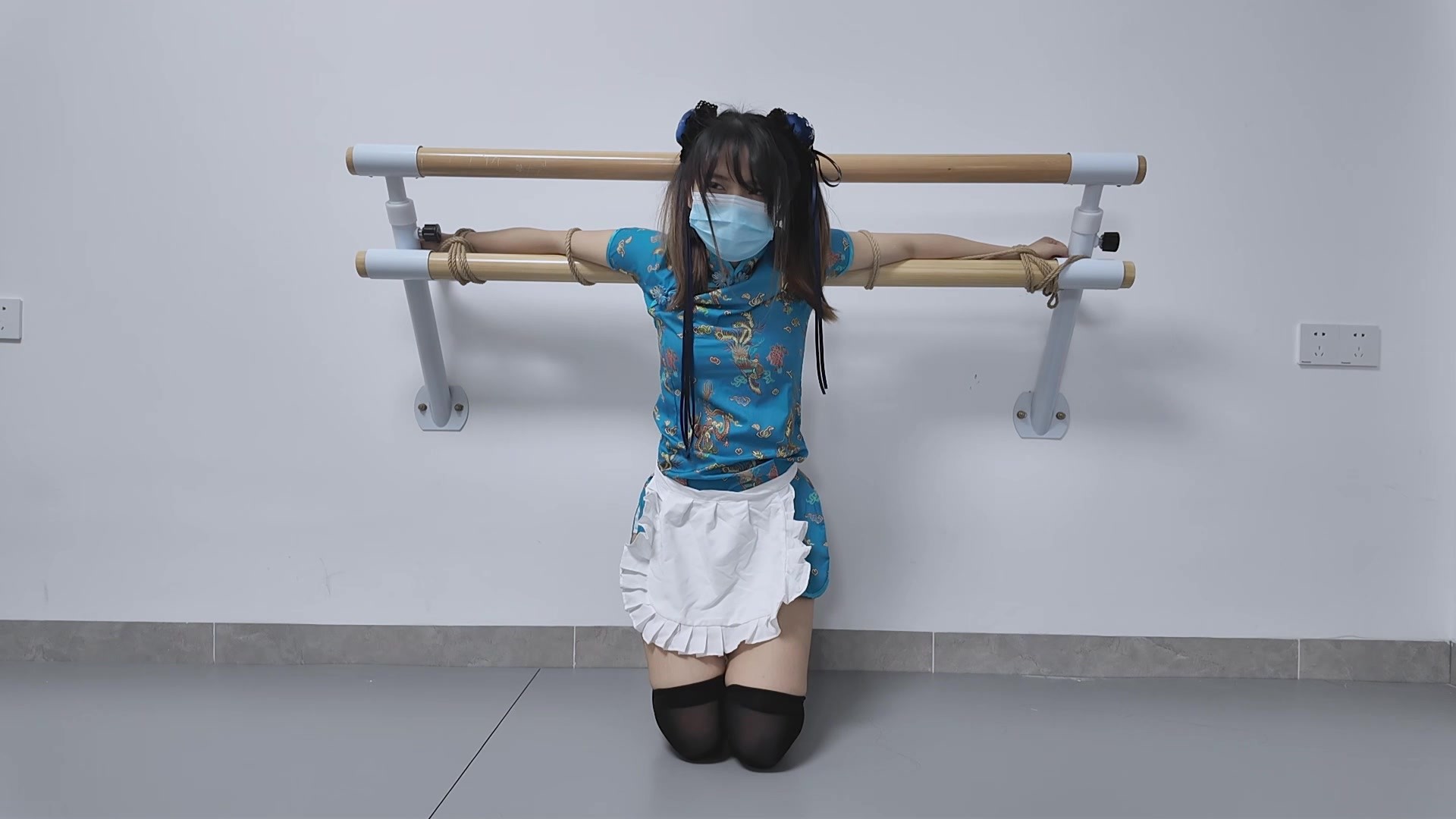 【海砂原创】长腿御姐上门调教,重口向单腿吊与电击sp反复走绳展示口枷接水(下)