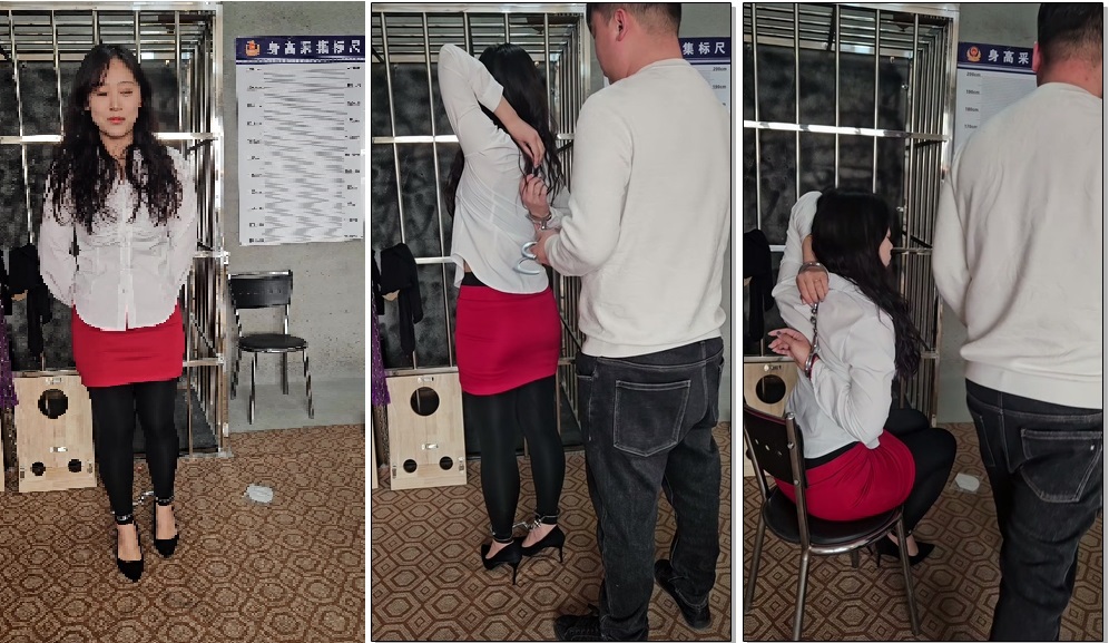 【皖北绳艺】某手几十万粉丝网红、白衬衫、高马尾、红底高跟。为艺术献身,铁笼里被囚、哭的梨花带雨!!!