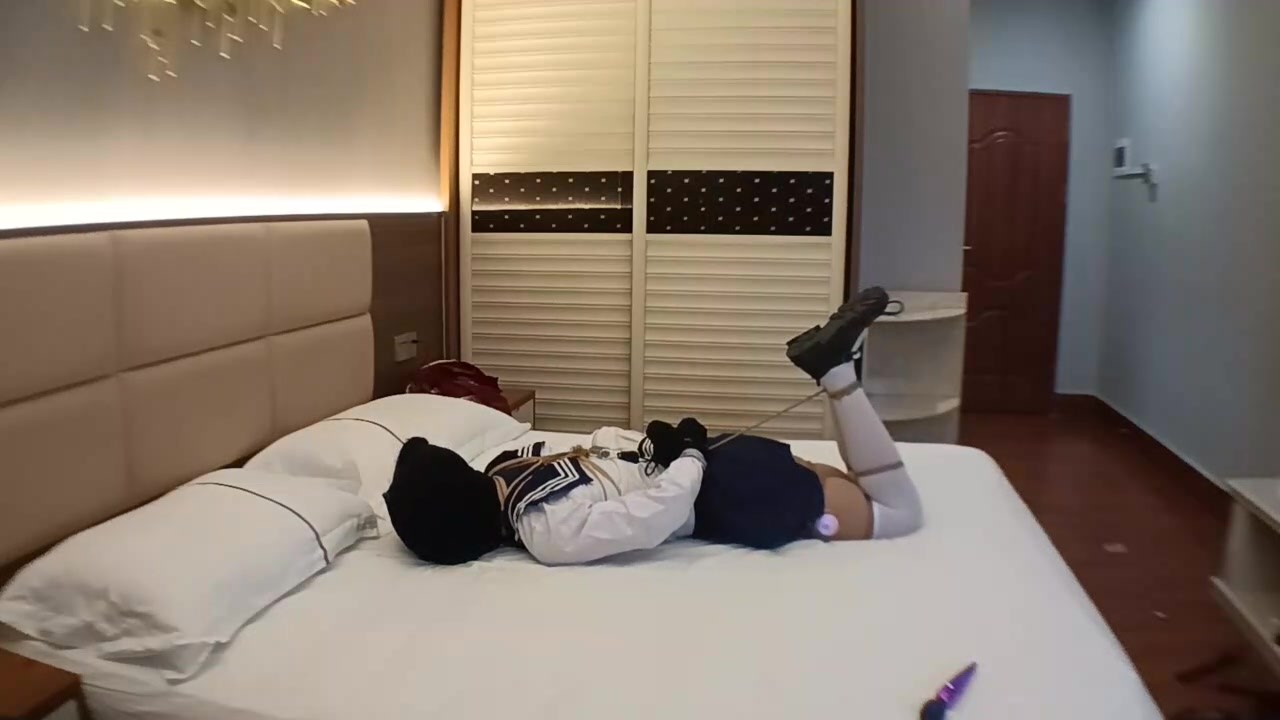 拍完学院风定时解锁后,下午又拍了JK定时放置。中间出现了个小意外。再把定时锁铐在身后时,没有铐好。只能等计时结束再继续。这次的驷马用一个拉钩,比之前的可能要好点。最后计时结束时,由于拉得有点紧。手腕上的绳收得太紧。正怕挣不开。还好,还是顺利解开了