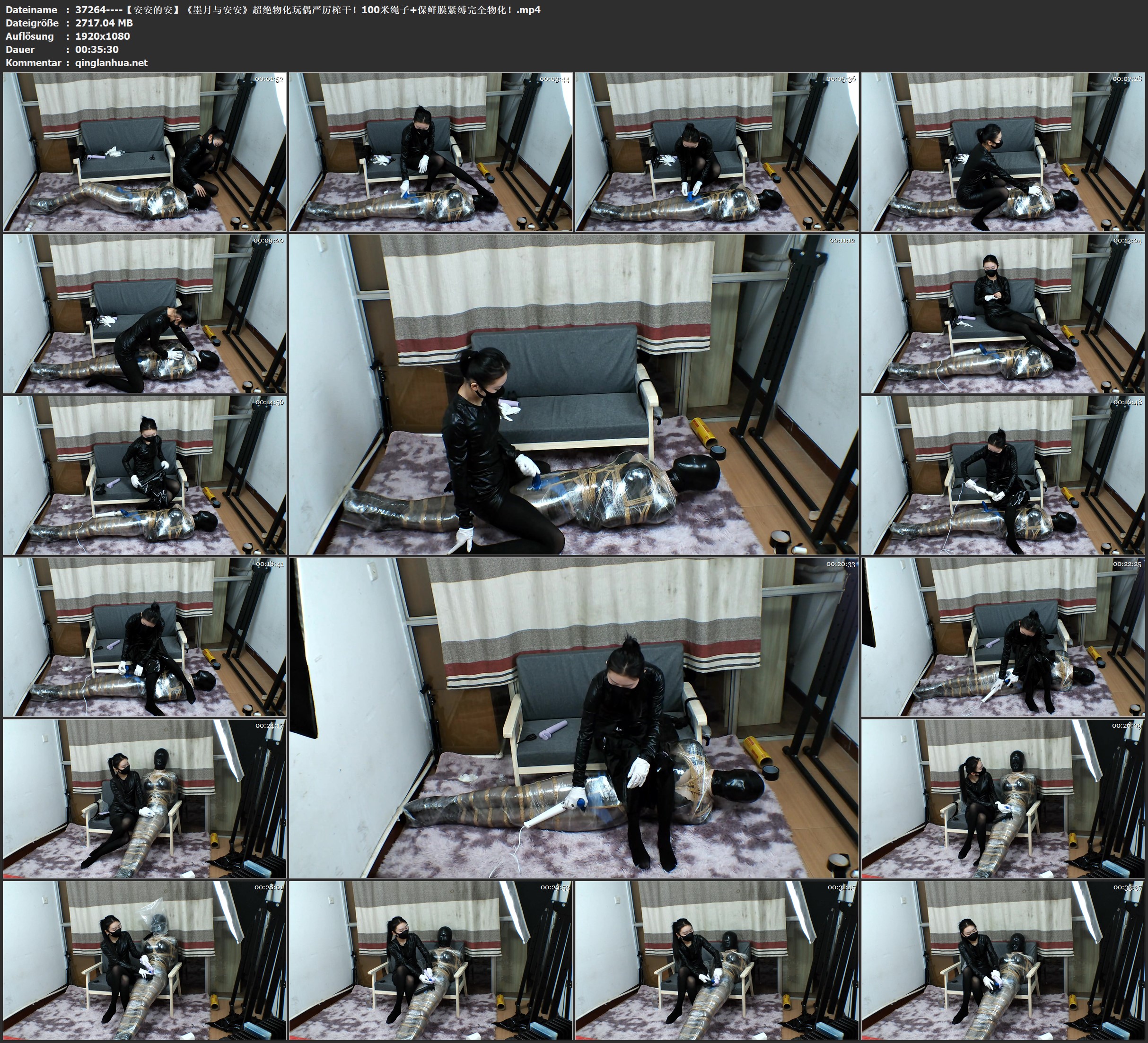 【安安的安】《墨月与安安》超绝物化玩偶严厉榨干!100米绳子+保鲜膜紧缚完全物化!墨月再一次化身无情榨汁机器~安安从头到脚严密紧缚包裹,被迫当做物品严厉玩弄,激 烈扭动挣扎却连...
