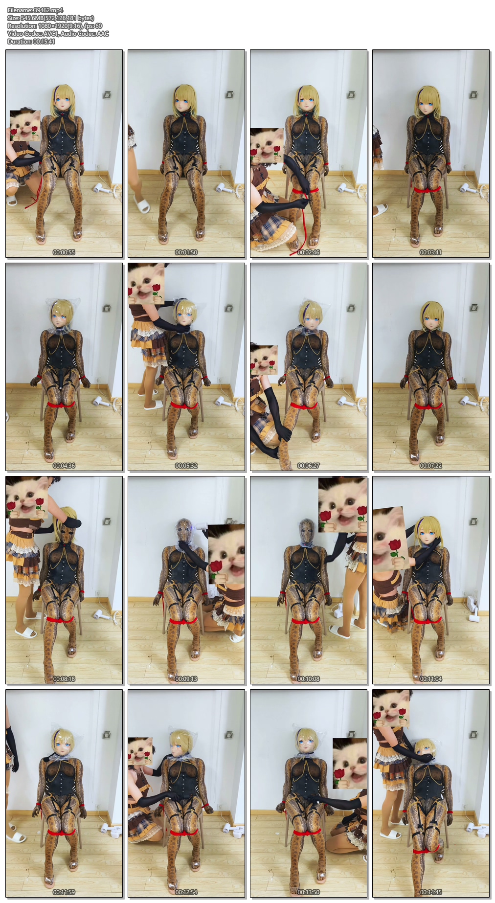 穿上着蛇皮变成蟒蛇娃娃,按要求被牢牢绑在椅子上,好长时间没玩过吹的热缩袋了,随着热缩袋的收紧,玩伴提出了把头壳摘下先用热缩袋把头包起来再戴头壳继续套热缩袋的玩法,已经被绑住了,只能默默承受了,当热缩袋包裹着头越吹越紧的时候已经开始慌了,呼吸不太动,接下来还要带上头壳继续热缩袋,已经完全不行了,疯狂挣扎,瘫软到椅子上