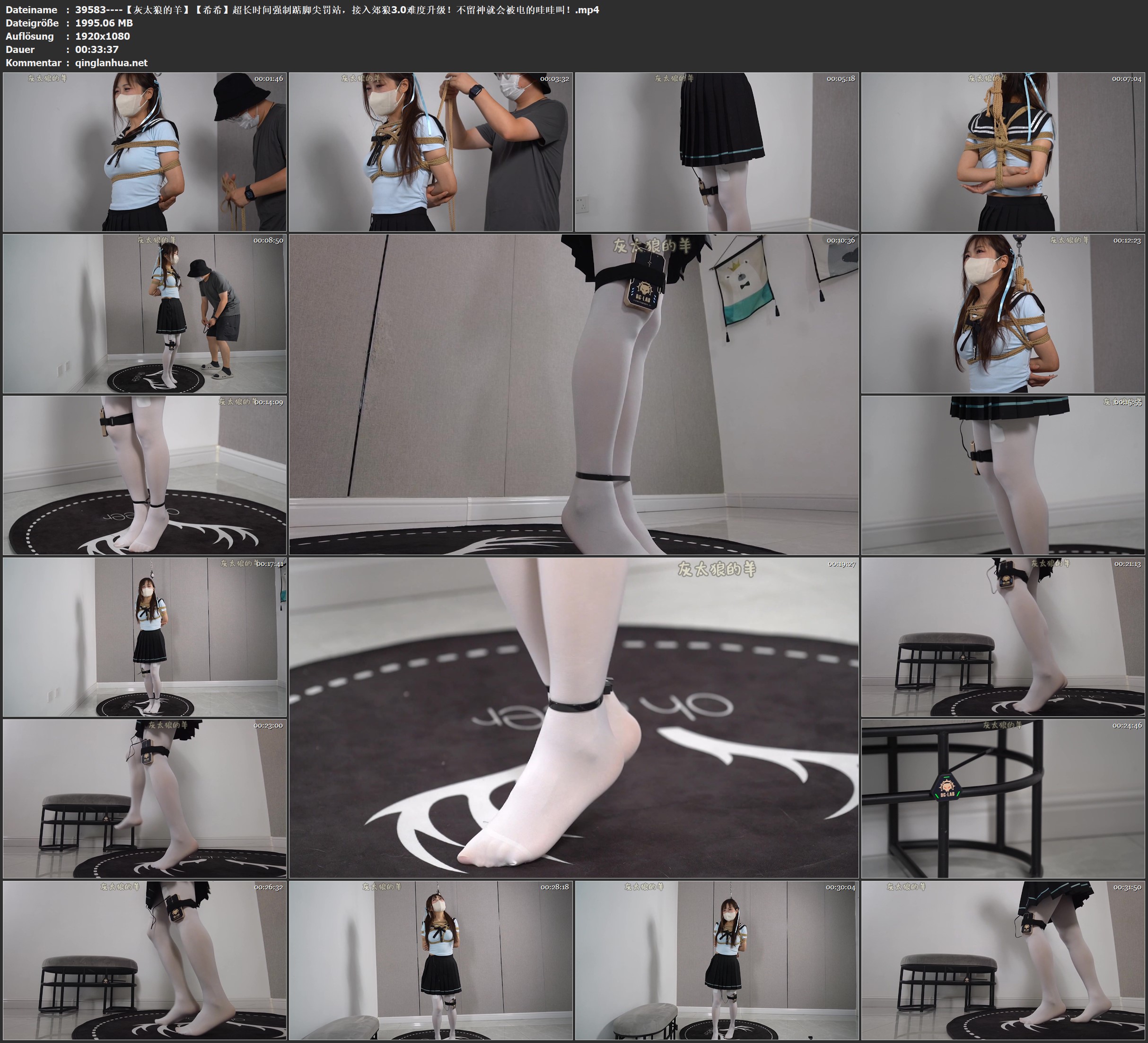 灰太狼近期新买了郊狼3.0版,想约绑希希拍一期超长时间强制踮脚尖罚站。希希以为只是简单的捆绑就欣然答应了,隔天就来赴约,寒暄几句后就开始今天的主题,绳子来回缠绕,上身被绑成日式,灰太狼让希希踮起脚尖,没有多想的她将自己的脚尖踮的高高的,灰太狼趁机从后面固定好。给希希说:“一会你只能踮着脚尖,如果脚后跟着地就会受到电击!”一脸惊讶的她感觉到今天的捆绑并不简单!