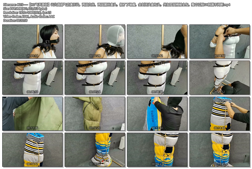 【HD飞天原创】云儿首部气功演示片,两层白丝、两层黑丝套头,假丁丁堵嘴,全封闭头套包头,外加双层棉被全包,整个过程GC刺激不间断......