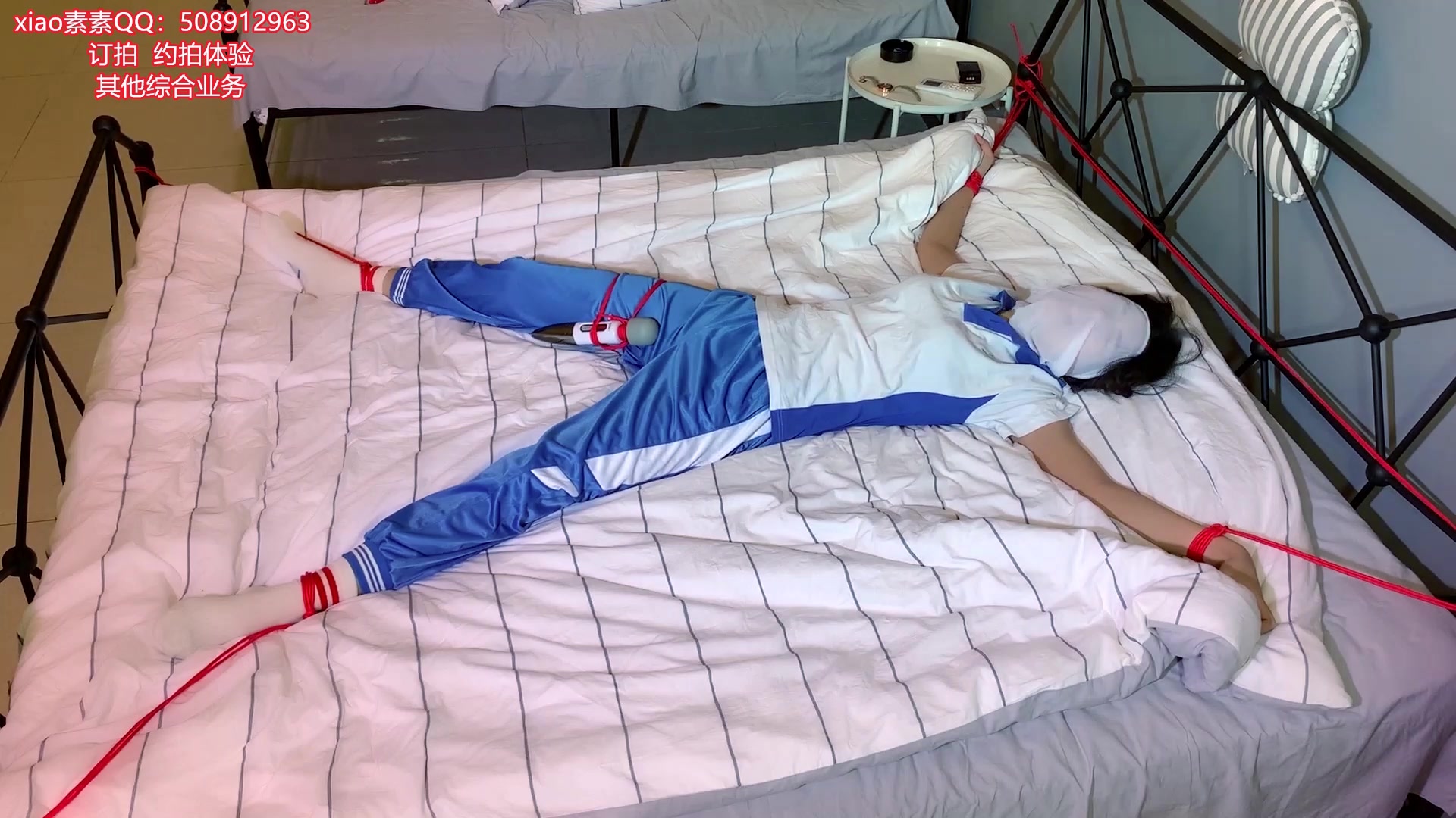 【xiao素素】学生服高邦白鞋 红条白袜 配红绳 捆绑单脚吊 脚尖顶地 和 大字床上捆绑 上下集