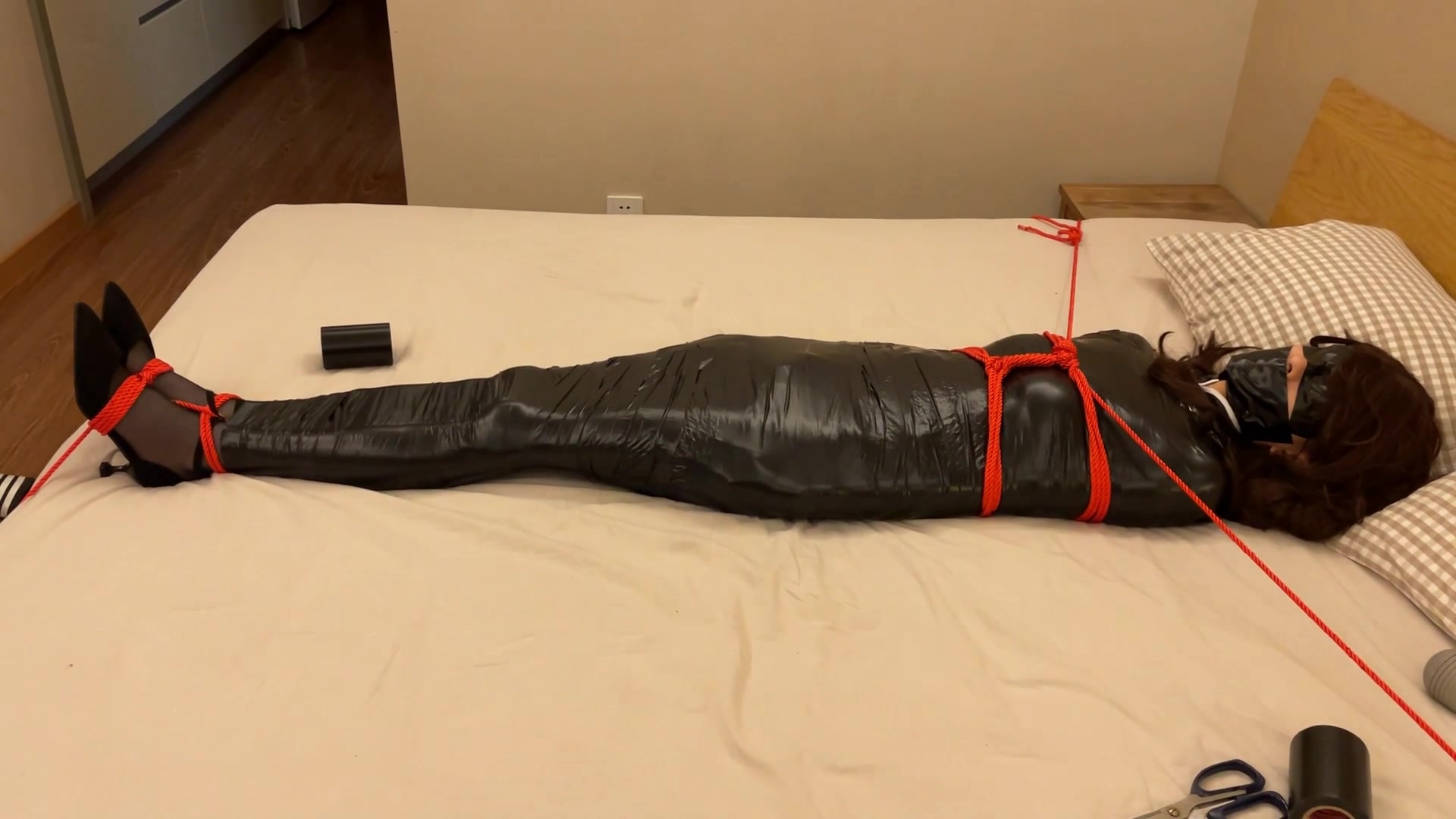 可爱的小胡桃子被红绳捆成驷马,扔床上用黑色胶带全包固定 最后用AV棒榨精。。