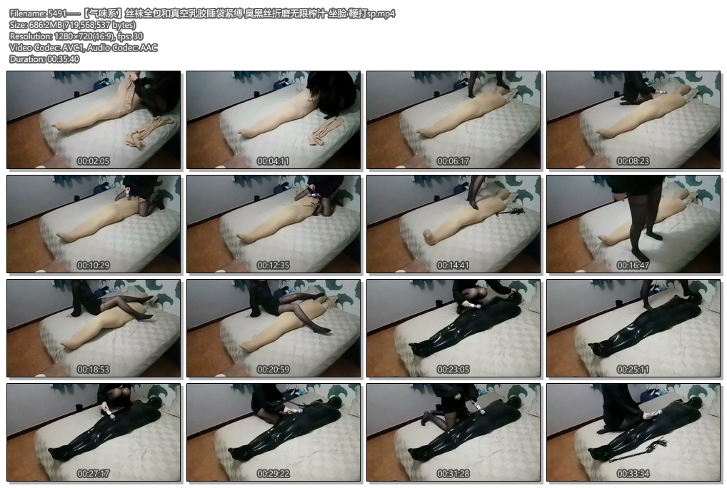 【气味系】丝袜全包和真空乳胶睡袋紧缚 臭黑丝折磨无限 ...