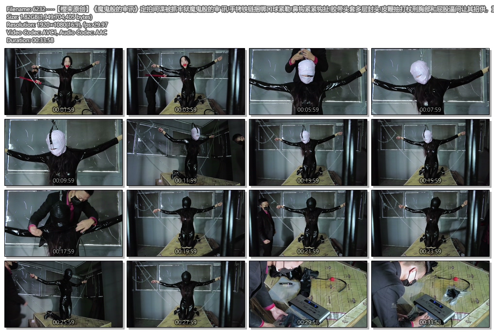 【樱束原创】《魔鬼般的审讯》定拍间谍被抓牢狱魔鬼般的审讯!手铐铁链捆绑口球紧勒!鼻钩紧紧钩扯!胶带头套多层封头!皮鞭抽打/杖刑胸部和屁股逼问让其招供,重拳击打/脚踢腹部被打到呕