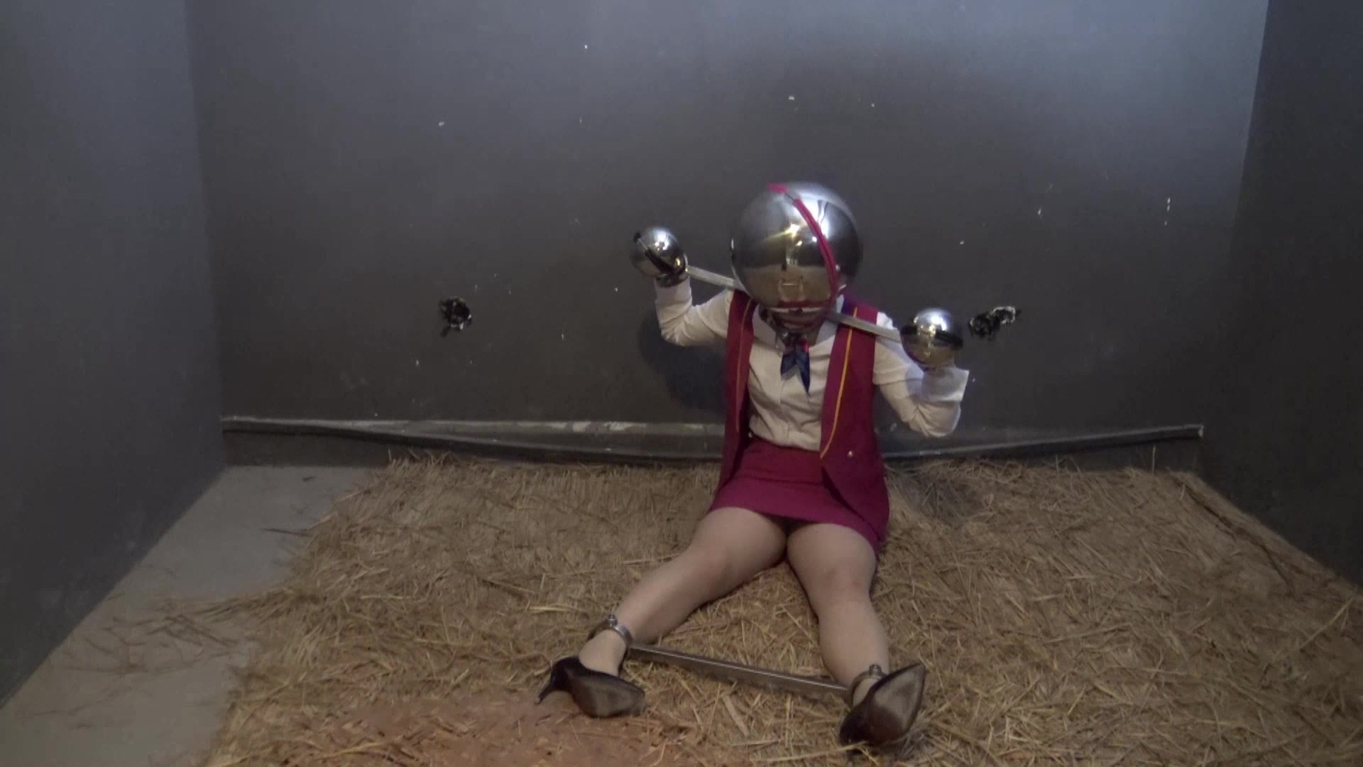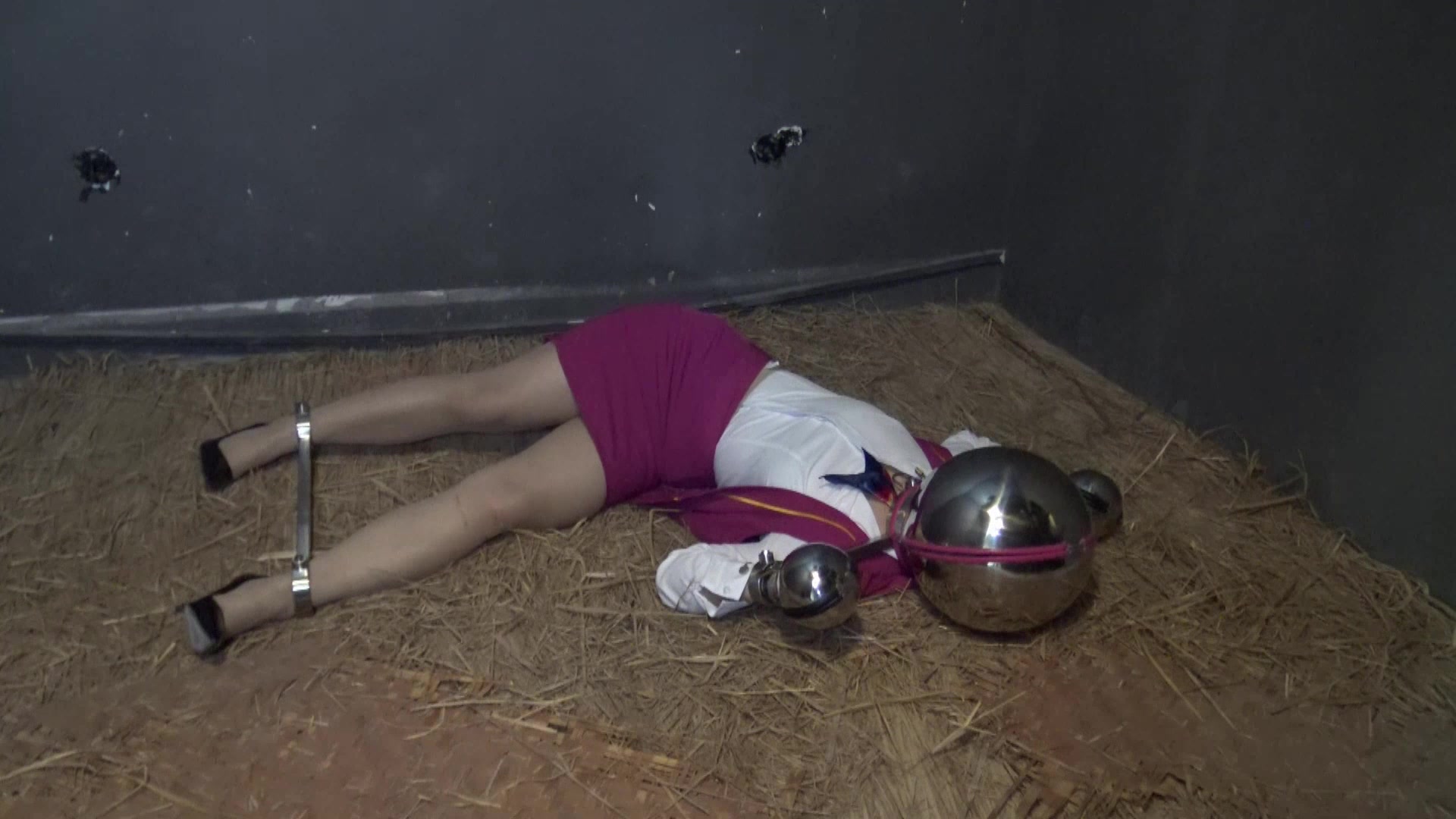 超长视频,空姐被绑架关押在地牢里,戴上马具型口球,眼罩,被颈手枷,固定脚镣,头球,手球固定在地牢里放置,这样被长时间禁锢着非常的难受,看看空姐在看不见,说不出,动不了的情况下怎么度过的,请欣赏视频