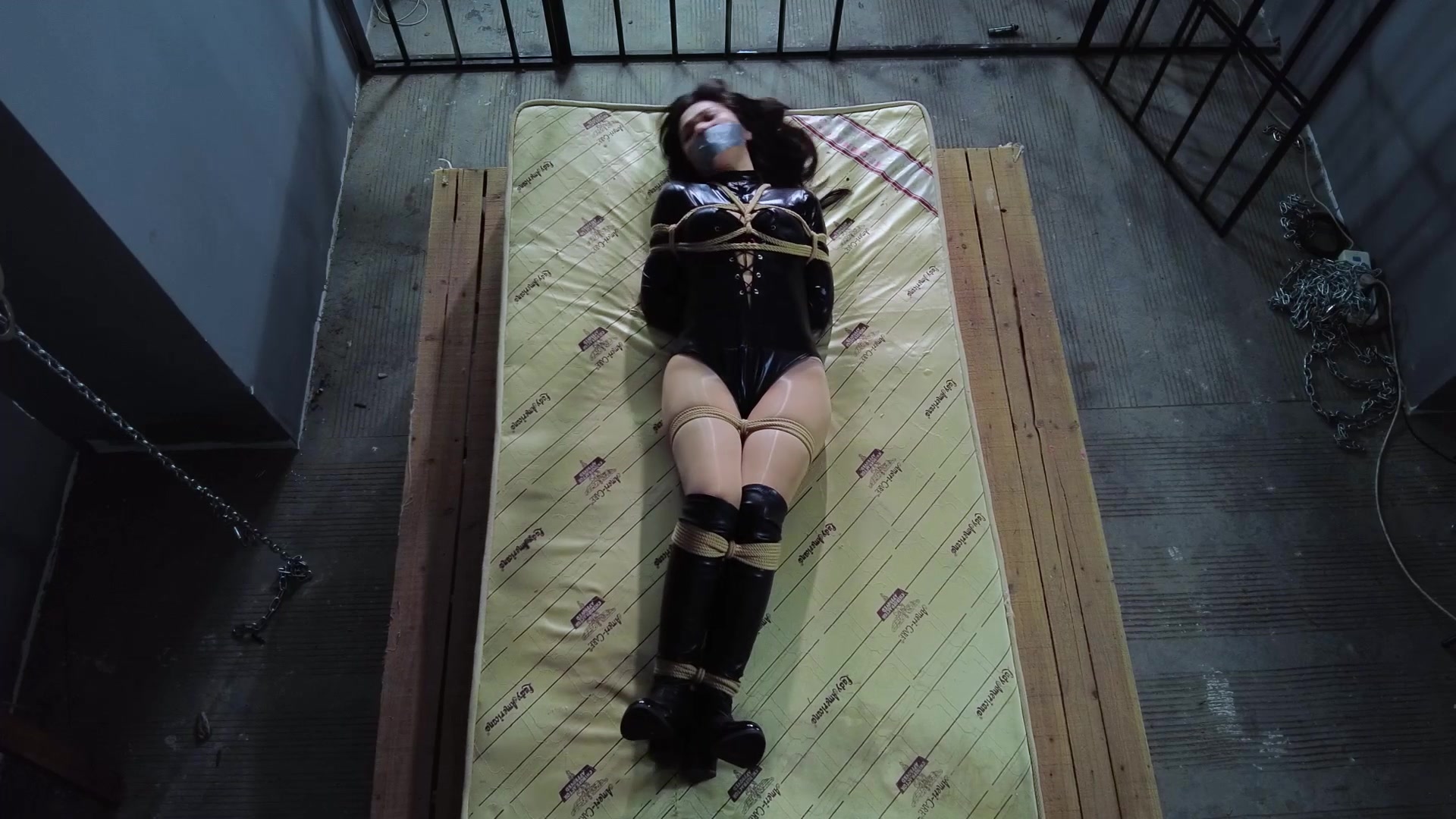 女特工陷入魔符陷阱昏迷,牢房,模特醒来,全身被绳子紧紧捆绑躺在床上,嘴巴被封住,开始疯狂挣扎求救挣扎,最后解开绳子脱困,在牢房撤离逃跑时,踩中魔符陷阱,突然双脚不能移动,然后全身也变得僵硬,摔倒,被突然出现的胶带捆绑(特效),不停的挣扎求救,头目回来:“既然她们逃了,那你就留下吧”,场景变换,模特被锁链捆绑在牢房床上,嘴被堵住,挣扎,直到视频结束)