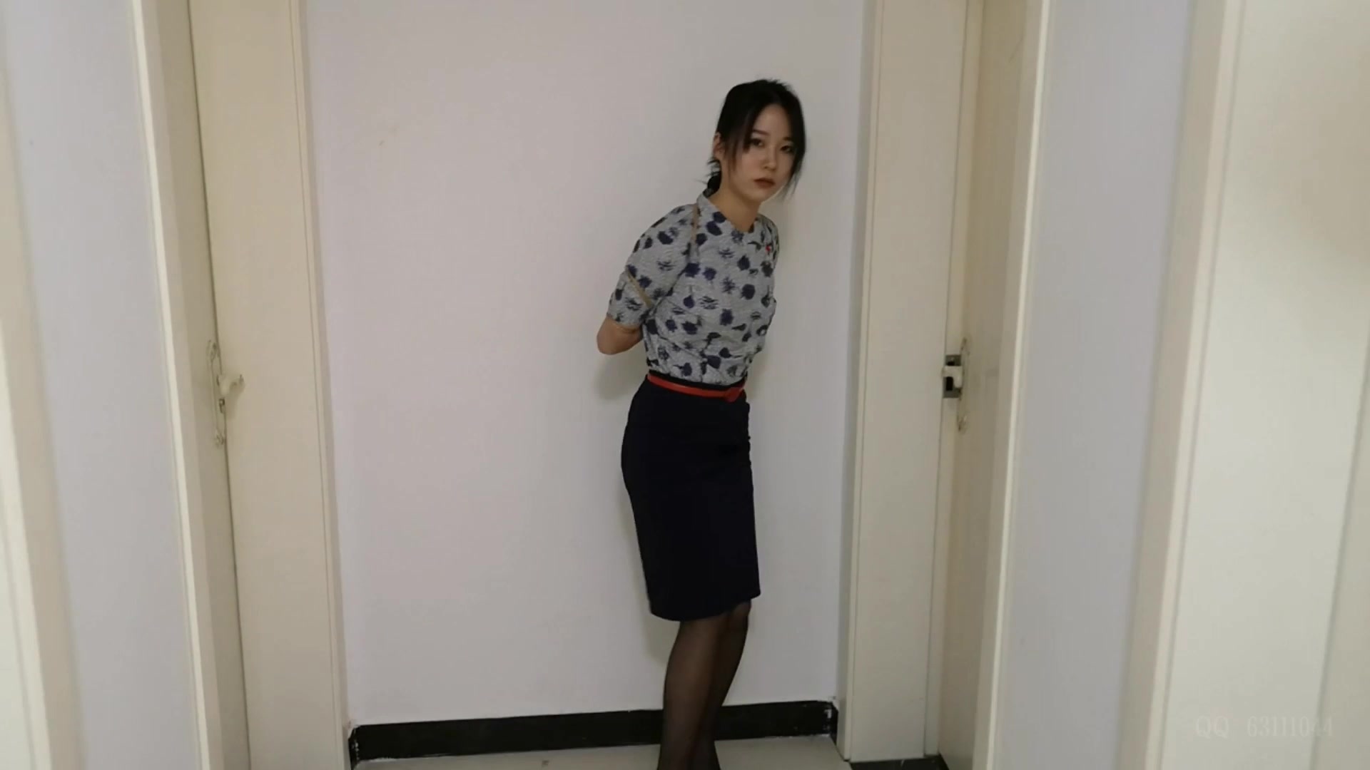 【束缘阁】文慧白衬衣皮裙 柱子全身固定