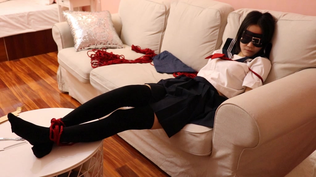 ②:挠了一会瑜儿因为吊篮太摇晃而晕车了,所以让瑜儿休息一会后开始正餐:反绑瑜儿双手,让瑜儿坐在沙发上,小脚丫并拢绑好搭在桌子上任人把玩。开始用刺轮、梳子等道具对瑜儿的黑丝脚底进行严厉的惩罚和折磨。瑜儿作为素人的矜持已经被脚底剧烈的痒感完全打破,不再像之前那样强忍着,崩溃着大笑起来。