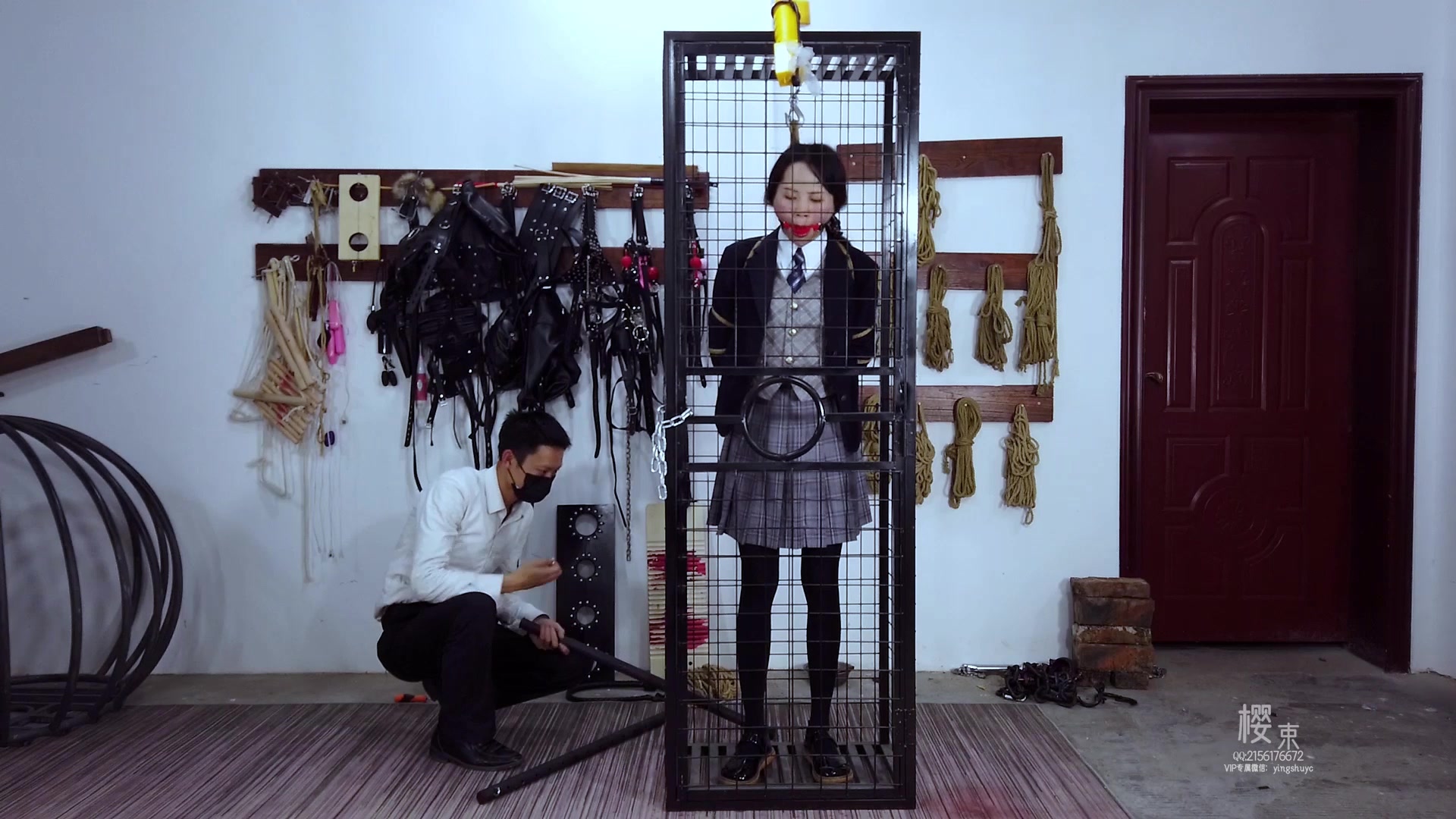 【缚心室】80多斤女学生的拘束架折磨小合集,啵啵贝VS炮机,两种