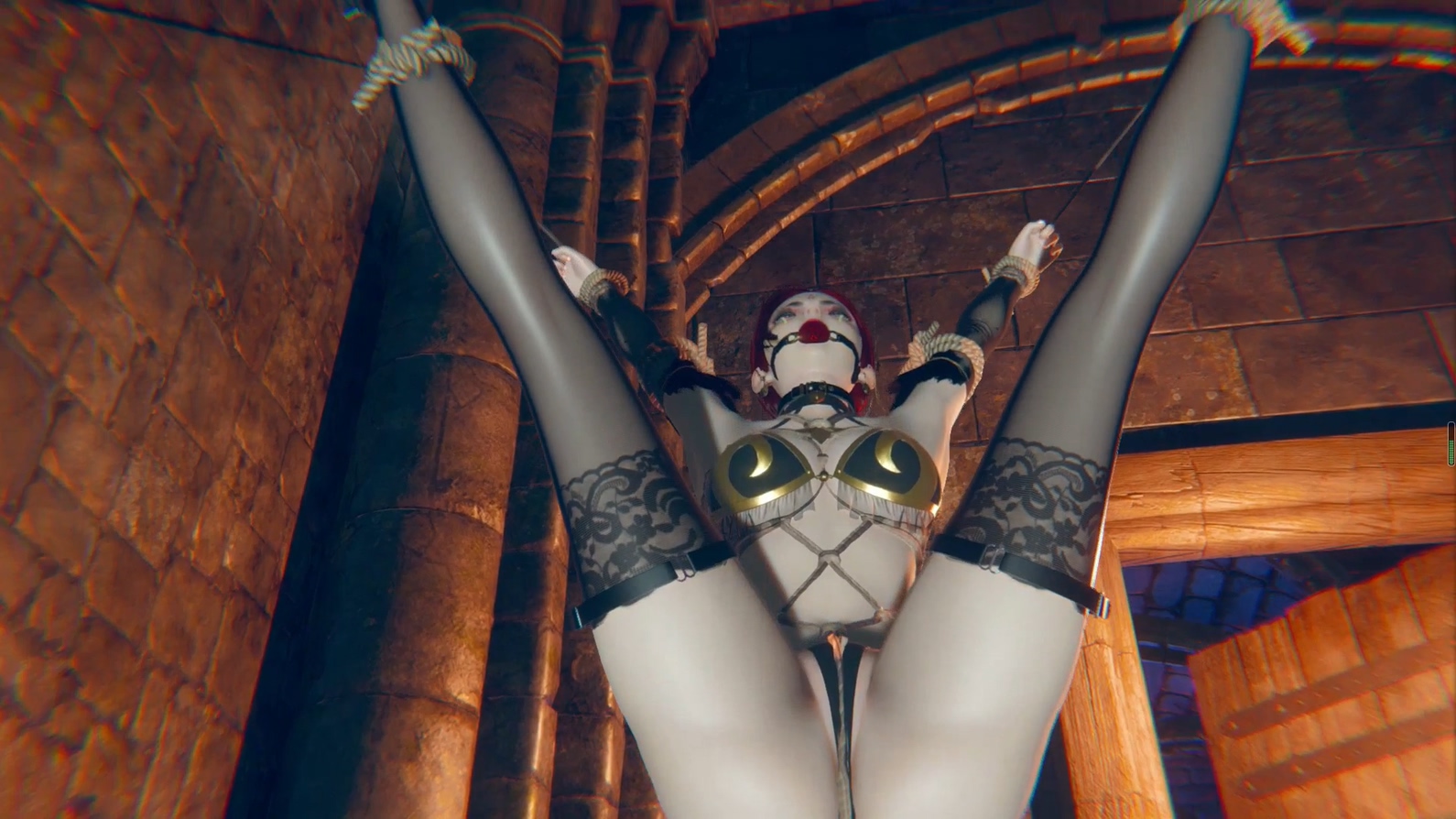 【3D动画】全身透视丝袜死库水泳衣少女 机械调教 瘙痒 口器 挠痒 ZDB 口球 强制站立 吊缚 白眼