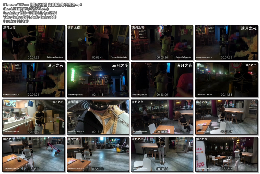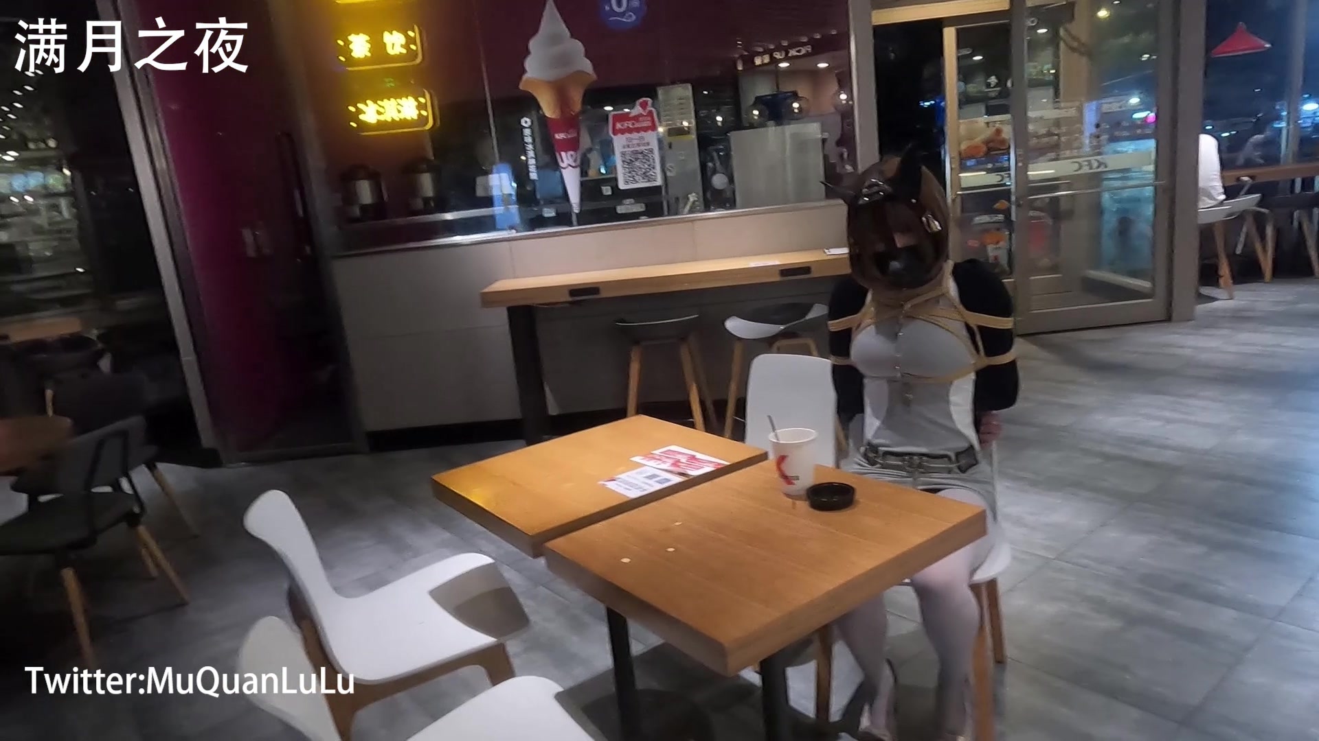道具使用了狗面具、项圈和贞操带。被捆着一开始还挺舒服的,后面时间越长越觉得累。胳膊和腰酸得要命,想换个姿势缓解一下都办不到。视频内容包含捆绑过程+酒吧里的活动+肯德基购物