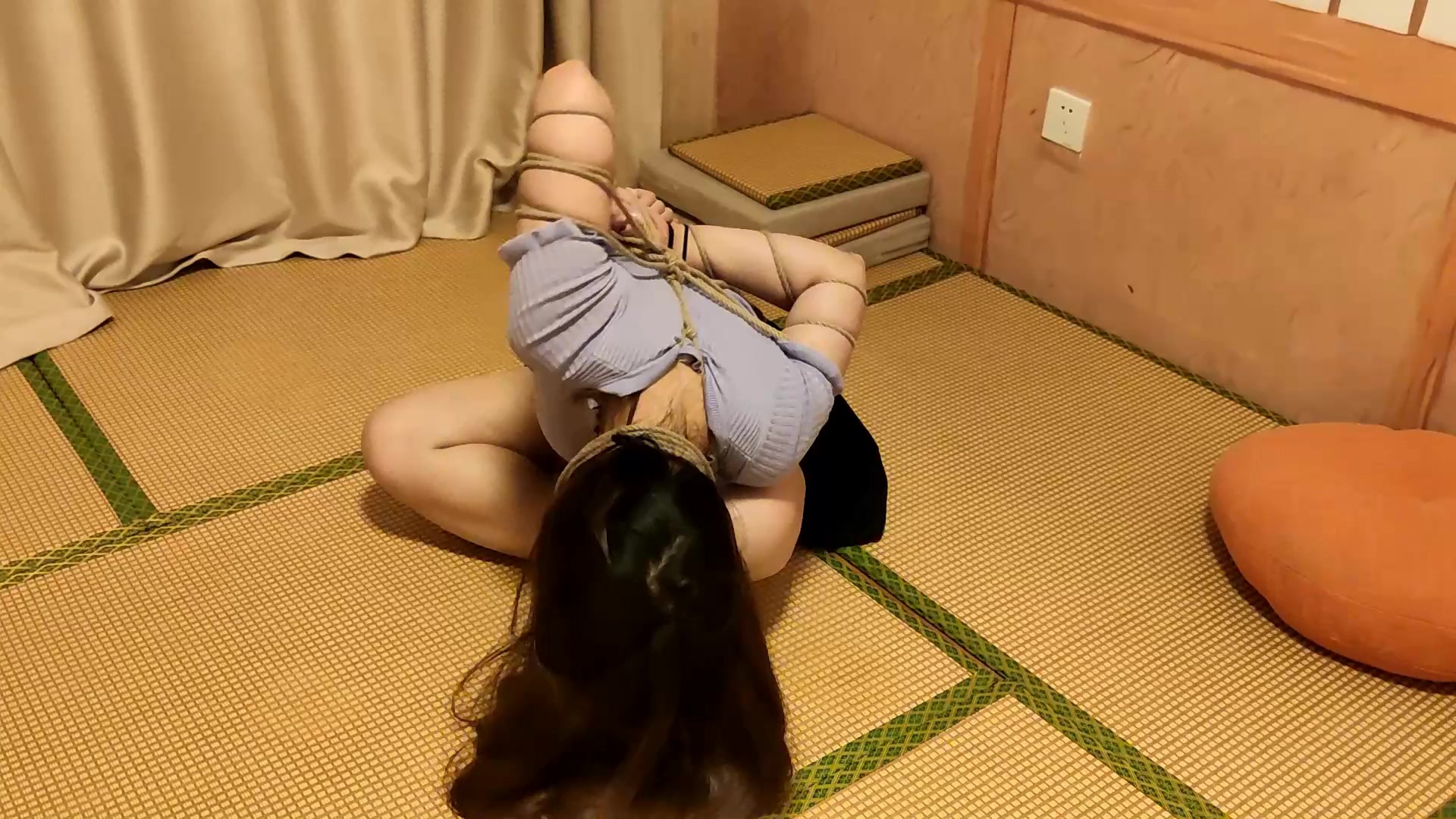 美女被驷马绑起来放置,还招来一只可爱的小猫咪陪伴。最后美女被五花団缚起来解不开了,直呼不想拍了