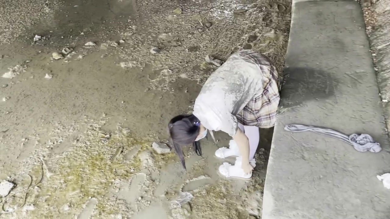 【小瓶子】粉色jk白丝工地旁玩泥玩水