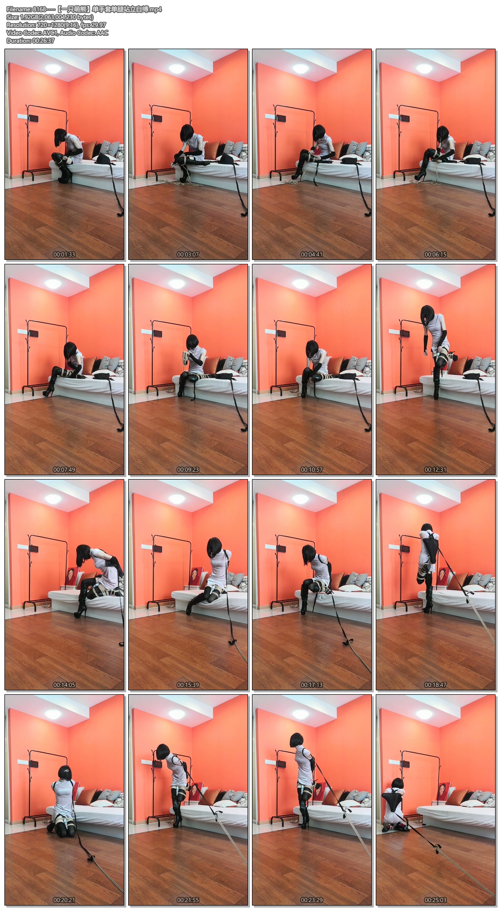 这次来挑战一下自己的平衡感,带上跳弹,固定好,穿上15cm的过膝长靴一只腿绑上开腿缚,再把大腿绑在一起,然后带上单手套,打开玩具开关到最大,被的折磨下两只腿站立都很难坚持,这次直接挑战一只腿站立,玩具刺激加倍!!,最关键的是单手套的拉链为了方便拉上就绑在了床头,最后我才想起来,绳子的长度不够我到桌角去蹭掉简单,再加上,只有一只腿可以行动,难度加满................