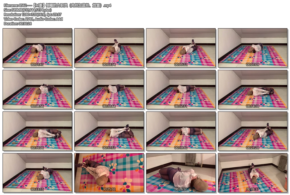 这次媳妇穿着工装扮演被绑架的女职员,依旧是丝袜堵嘴,丝袜套头,放置挣扎