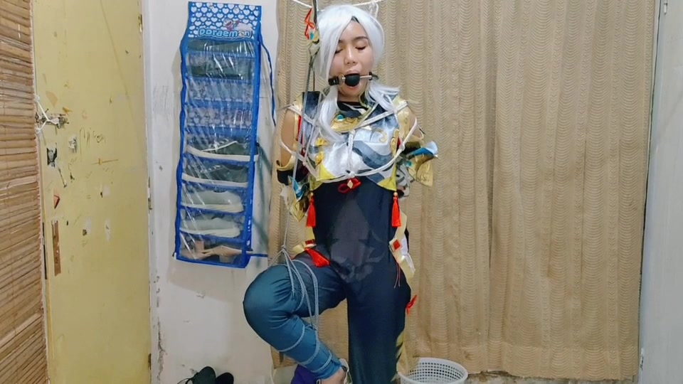 【TiedIndonesia】原神芭芭拉的捆綁鬥爭,白色絲綢,封口,繩子,歐式直裝風格