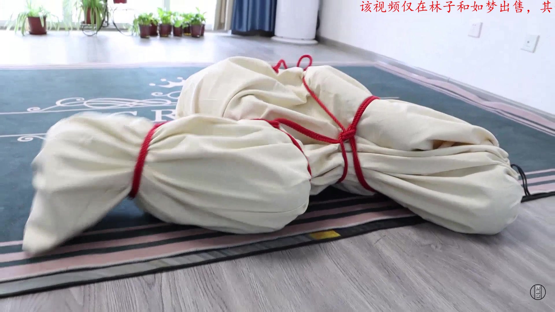 模特雨晨。小偷潜入家中盗窃,躲在房间里听到女主人回来后,一不做二不休的把女主人控制捆绑起来。开始,女主人上半身被采取日式紧缚,下半身被股绳加蛇缚紧紧捆绑的靠在墙上,小偷用一块毛巾揉成一团,塞到女主嘴巴里,随后用五张布基胶带将嘴巴牢牢封住,男主为测试女主还能发出多少声音,强迫她呜呜呜地叫喊,见女主只能呜呜呜后,小偷放心,把她靠在墙上了后去翻找财务,女主在墙边挣扎,一会,男主拿来了一个大的长帆布袋,尽管女主不情愿的呜呜可还是被小偷强行塞入帆布袋中,塞入帆布袋打好结后,小偷见女主还乱动,踹了几脚后,又用红色绳子把帆布袋牢牢捆绑住(如图视觉冲击很强)感觉绑结实了,男主继续寻找财务,而女主在袋里挣扎并呜呜呜。一会男主拿着银行卡过来,将女主从帆布袋里放出来,虽然用刀威胁命令她说出密码,女主只好说了密码,随后就被捂晕。镜头一转,已经嘴里戴着口球,身子大字捆绑在床上,努力挣扎。一会男主来了,表示:拿到钱了,但还想玩玩她。随后强行扒了女主的靴子,开始用齿轮,夹子玩弄她。齿轮挠脚心及全身,夹子夹脚趾,让女主痛并快乐着。玩了会,觉得女主喊叫太大声,就脱了她的袜子,用原味堵住她的嘴巴后用银色胶带封上,继续玩弄,直到女主爽为止。一会,男主累了,决定给女主喂些吃的,好戏来了,这里又有耻辱喂食,女主被直臂缚加驷马倒攒蹄捆绑着吃面包很屈辱。不等女主吃完,男主又用刚给她穿上的鞋袜,(被鞋子熏过的袜子堵嘴),原味白棉袜塞入嘴巴后,接着白色绷带缠绕,三块红色布基胶带,三块灰色布基胶带封住,布基胶带封好,又用粉白静电胶带缠绕住,以此女主有口不能言了,难受得呜呜,楚楚可怜。女主挣扎给力不少于四分钟。