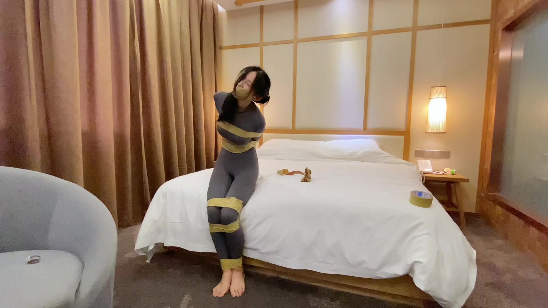 【默示录】【小沐】美国灰色胶带的捆绑与丝袜套头~