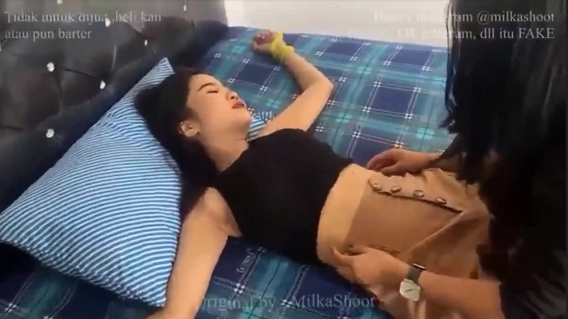 【TiedIndonesia】与演员Lea的痒痒游戏 以交叉姿势被绑在床上,双手举起,露出白色的腋窝。性感的长腿也被绑起来,用刷子搔痒。美丽的白丝。40分钟的搔痒和汗水。