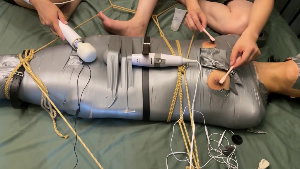 夕是一户人家得女仆,作为女仆的每天必备工作是应该给女主人洗袜子,但是没想到夕为了偷懒,没有为女主人清洗袜子,被主人发现以后,女主人立刻决定惩罚这个偷懒的女仆,用脏袜子开始对夕进行调教,男主人回来以后,和女主人一起惩罚偷懒女仆。首先女主人把夕用眼罩蒙住眼睛,再捆住双臂,把装了脏袜子的袋子套在夕的头上,强迫闻干净气味进行气味调教,并且强行给夕戴上了电击器贴在身体的敏感部位进行电击,再把脏袜子盖在夕的鼻子上强迫闻味道,但是不断挣扎的夕触怒女主人,于是立刻打开电击道具开始折磨夕的身体,为了起到惩罚的作用,女主人还把夕的腿也绑了起来,并且堵住嘴巴,让夕叫天天不应,叫地地不灵。在沙发上玩够了以后,主人把夕带到了床上,开始进一步的洗脑调教,在夕全身都贴着电击器,再配合震动道具放在重点部位,这些准备工作完成以后,主人将夕用保鲜膜包裹起来,外面配合多层的胶带,把臭袜子沾水贴着夕的脸,用绷带和绳子固定住,制作成女仆木乃伊。夕同时被胶带,保鲜膜,绳子三重拘束,一点也无法动弹,被牢牢固定在床上,主人用一根牙刷开始在夕的胸部摩擦,用牙刷的刷毛开始折磨夕的胸部敏感点,夕被折磨得不断挣扎,反复兴奋,这时候又用再一根开始刺激夕的隐私部位,不管夕怎么求饶都持续进行电击和调教,夕在快乐中被强制了数次,最后在一次次的兴奋中,夕逐渐被女主人的臭袜子彻底洗脑控制,变成了女主人的袜奴。