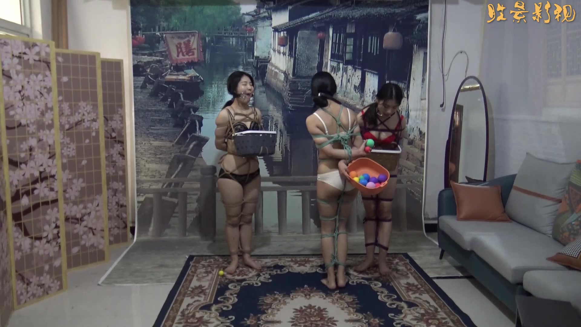 【胜景影视】《捆绑式投球游戏》 三美女被捆绑着双手把 ...